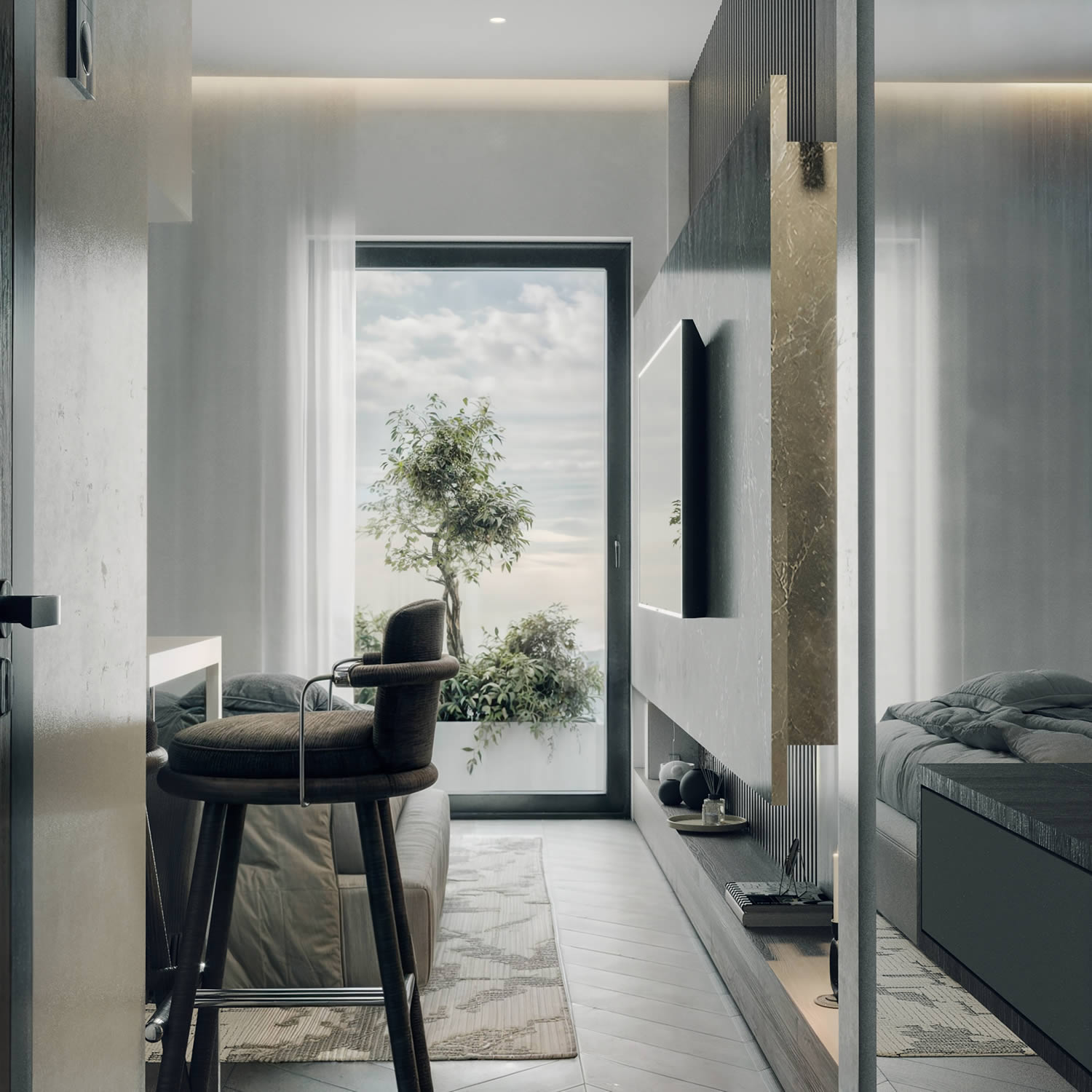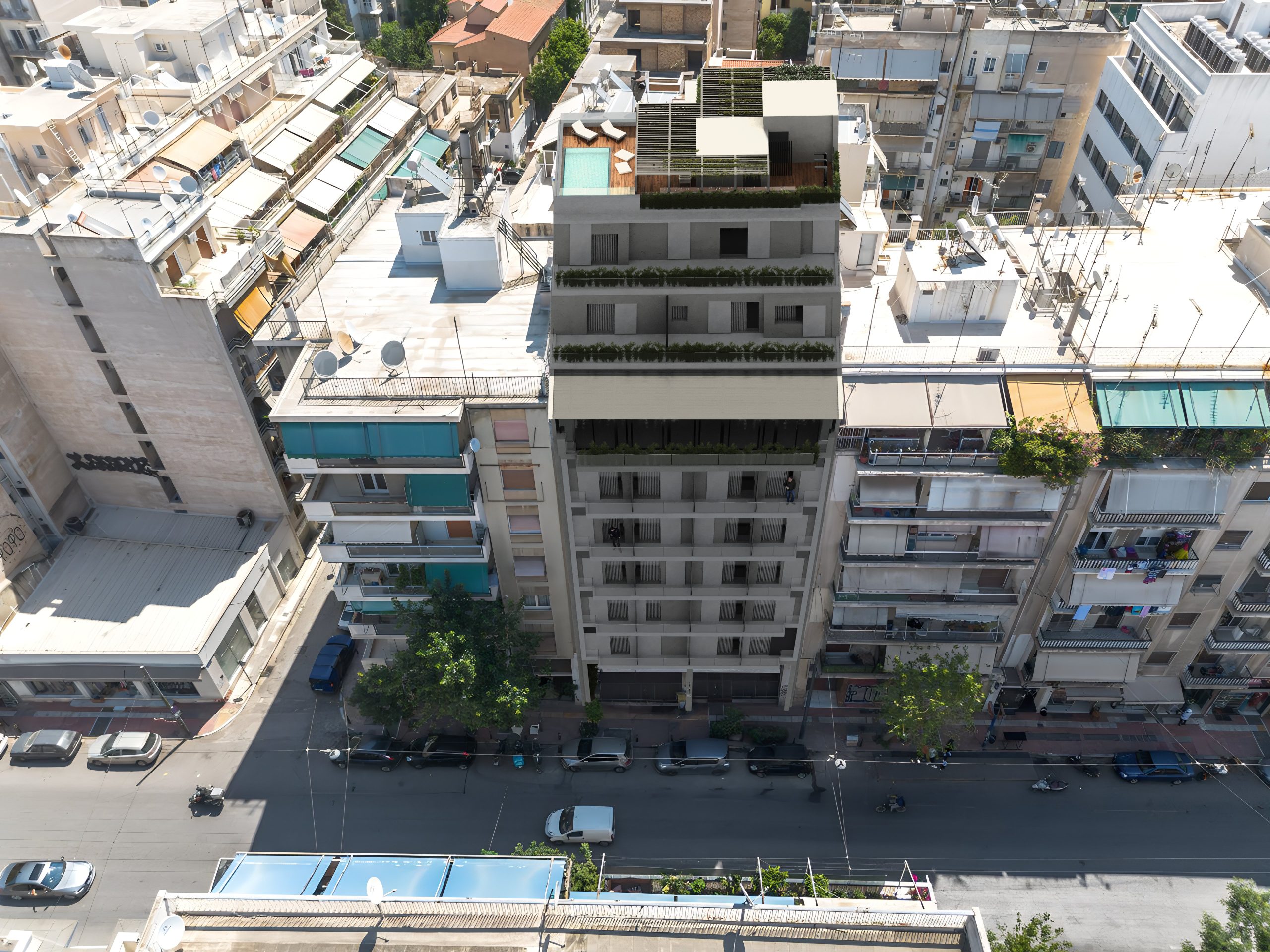 In the bustling environment of Platia Victoria, Athens, we have developed a contemporary residential project encompassing approximately 2,500 square meters.