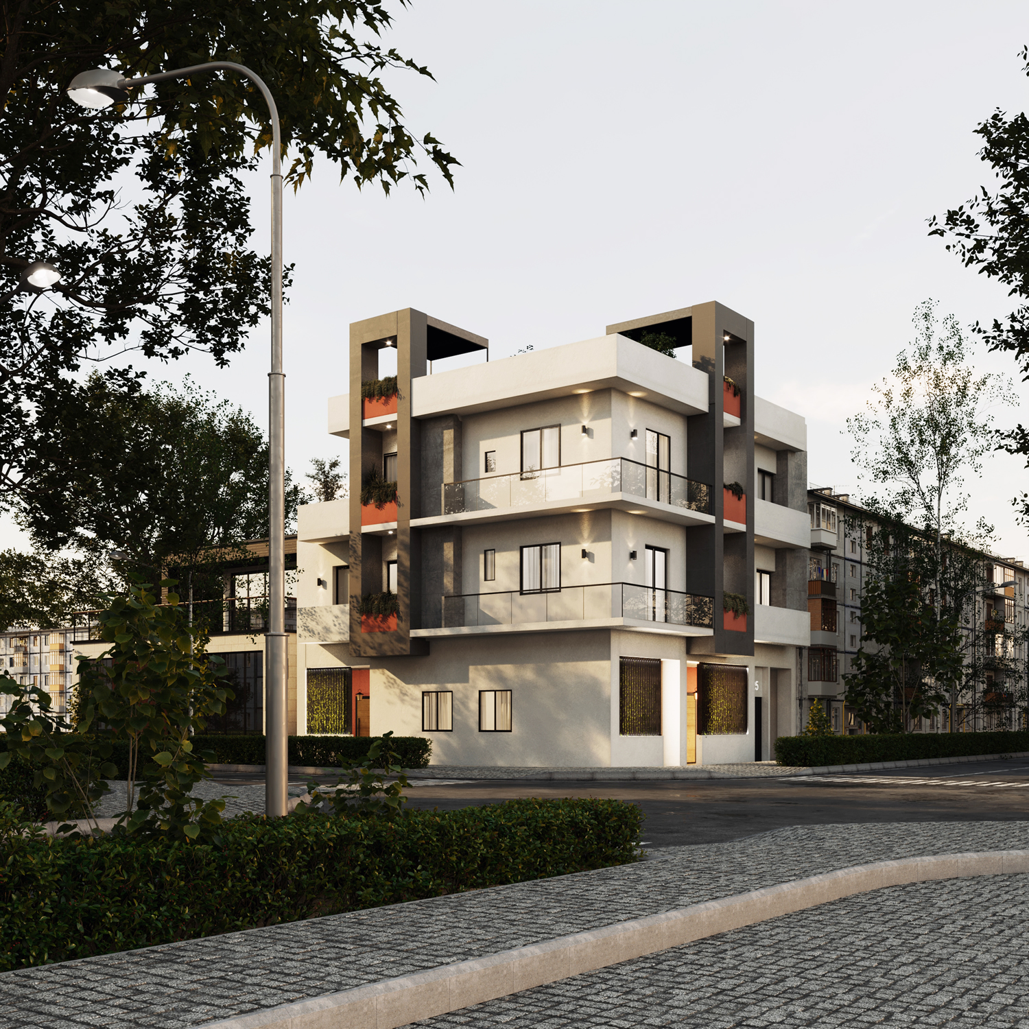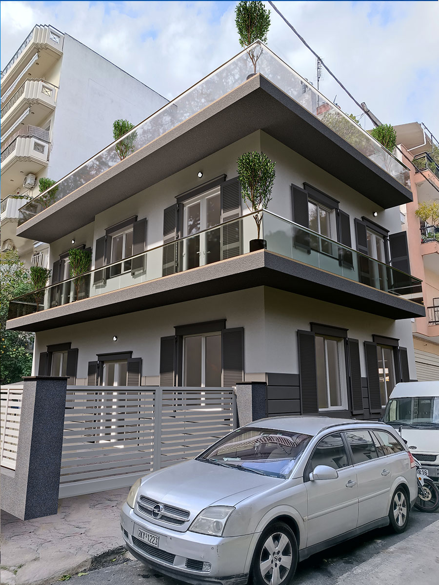 The Thermopilon project – an urban renewal project, a corner building with 3 air directions, located on the popular shopping avenue where most of the shops are located in the Agalo neighborhood.